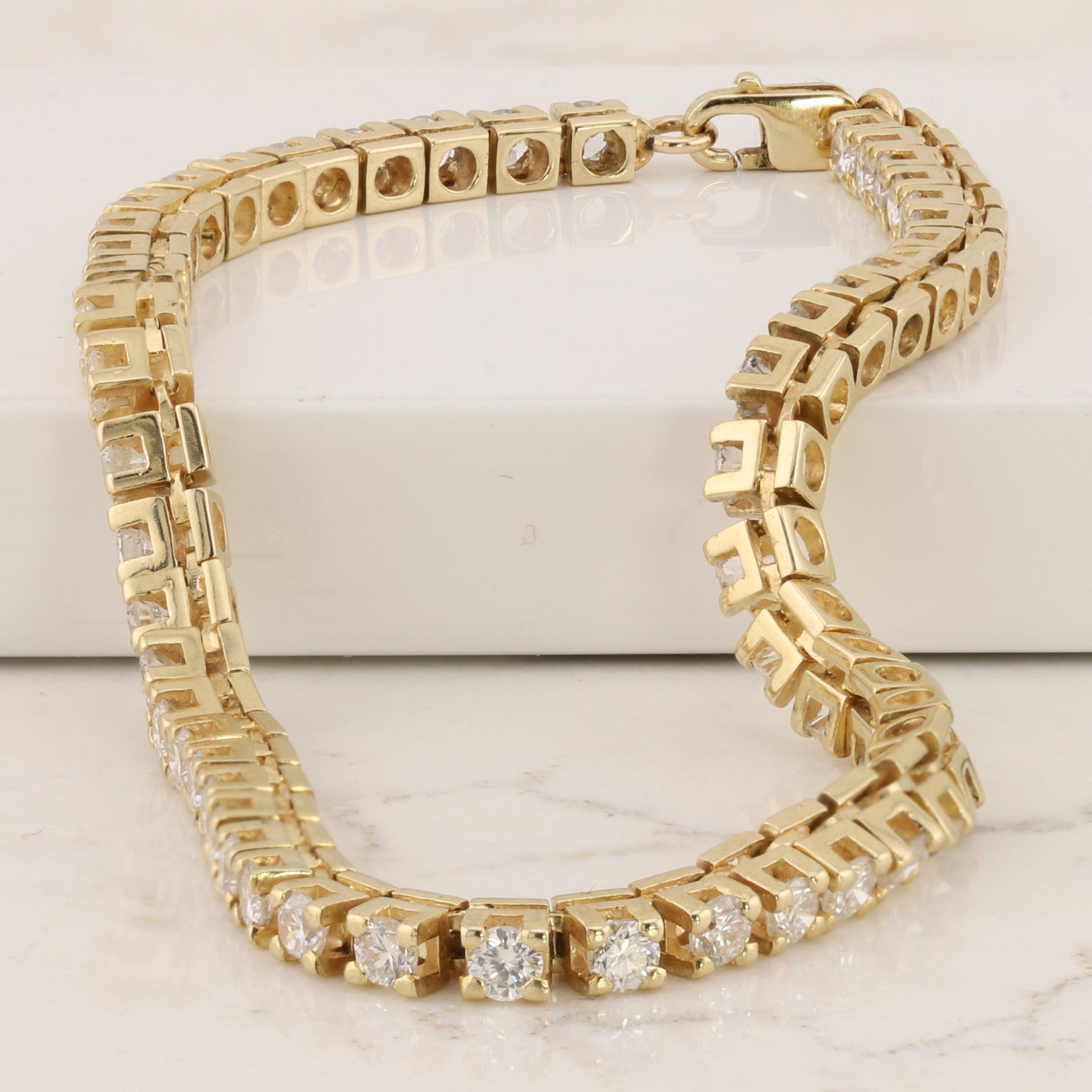 Indulge in the ultimate expression of elegance with this 14kt Yellow Gold Tennis Bracelet.