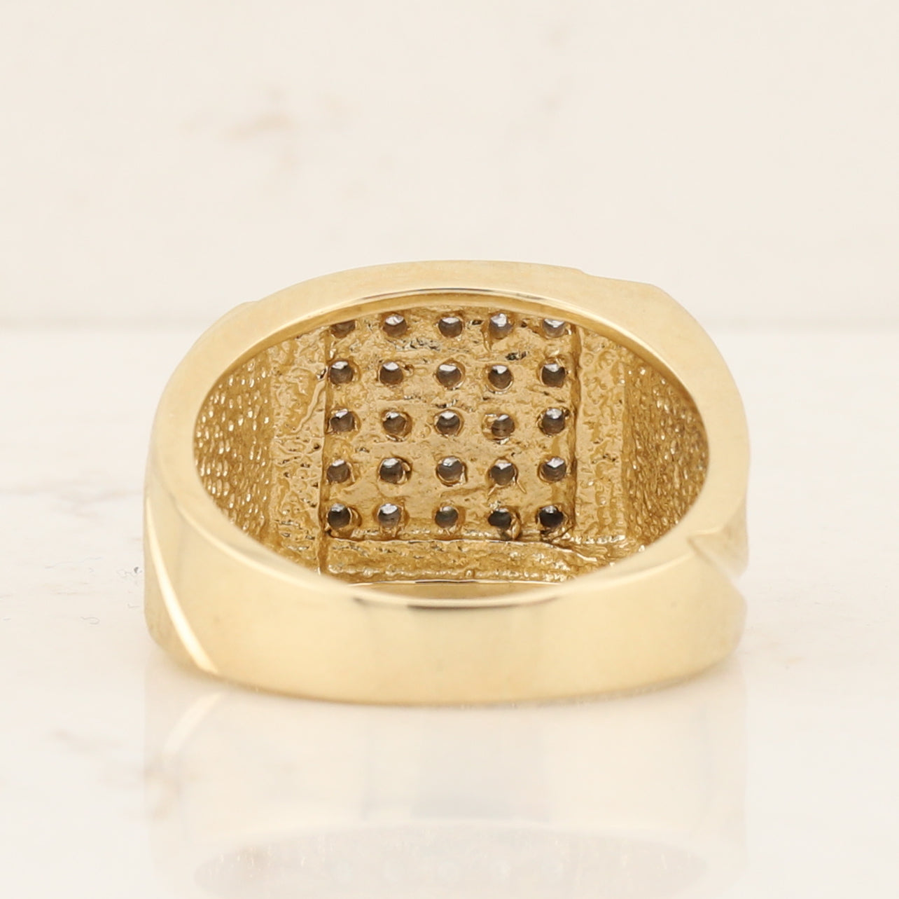 1okt yellow gold square top ring set with small diamonds, the ring is a finger size 11