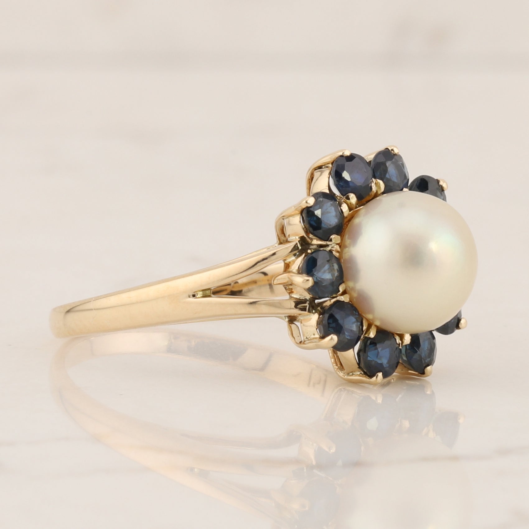 14 kt Pearl and Sapphire Ring