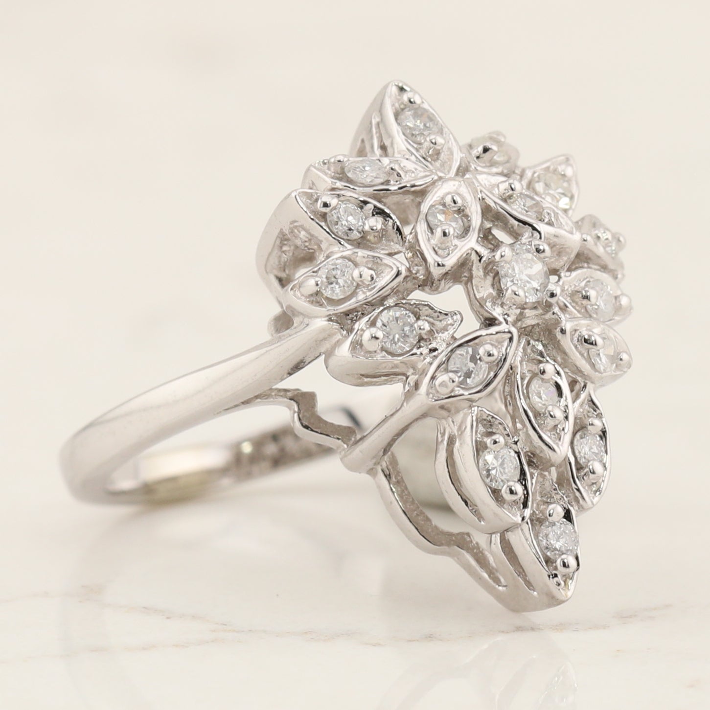14kt w/g diamond cluster style ring, finger size 6