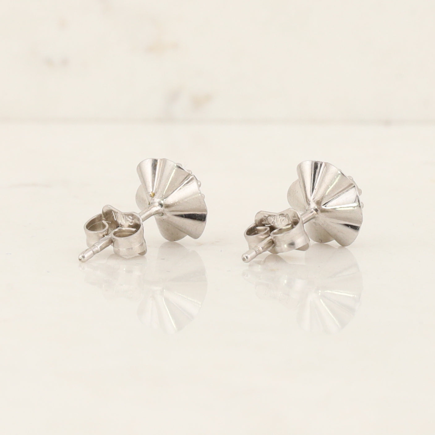14kt white gold scalloped edge cluster earrings, with stub post and butterfly.