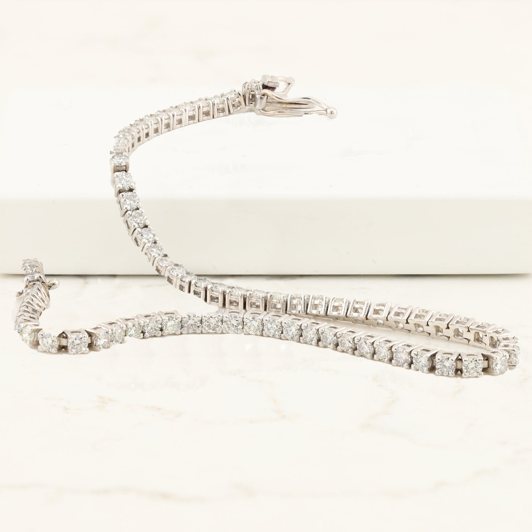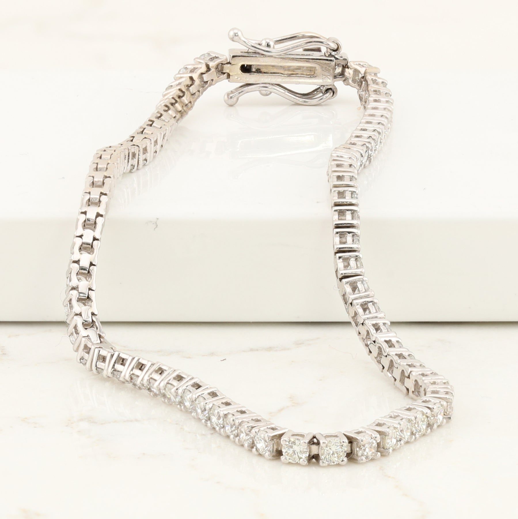 14kt white gold diamond tennis bracelet with 3.20cts total diamond weight. The bracelet is 7.5 inches in length