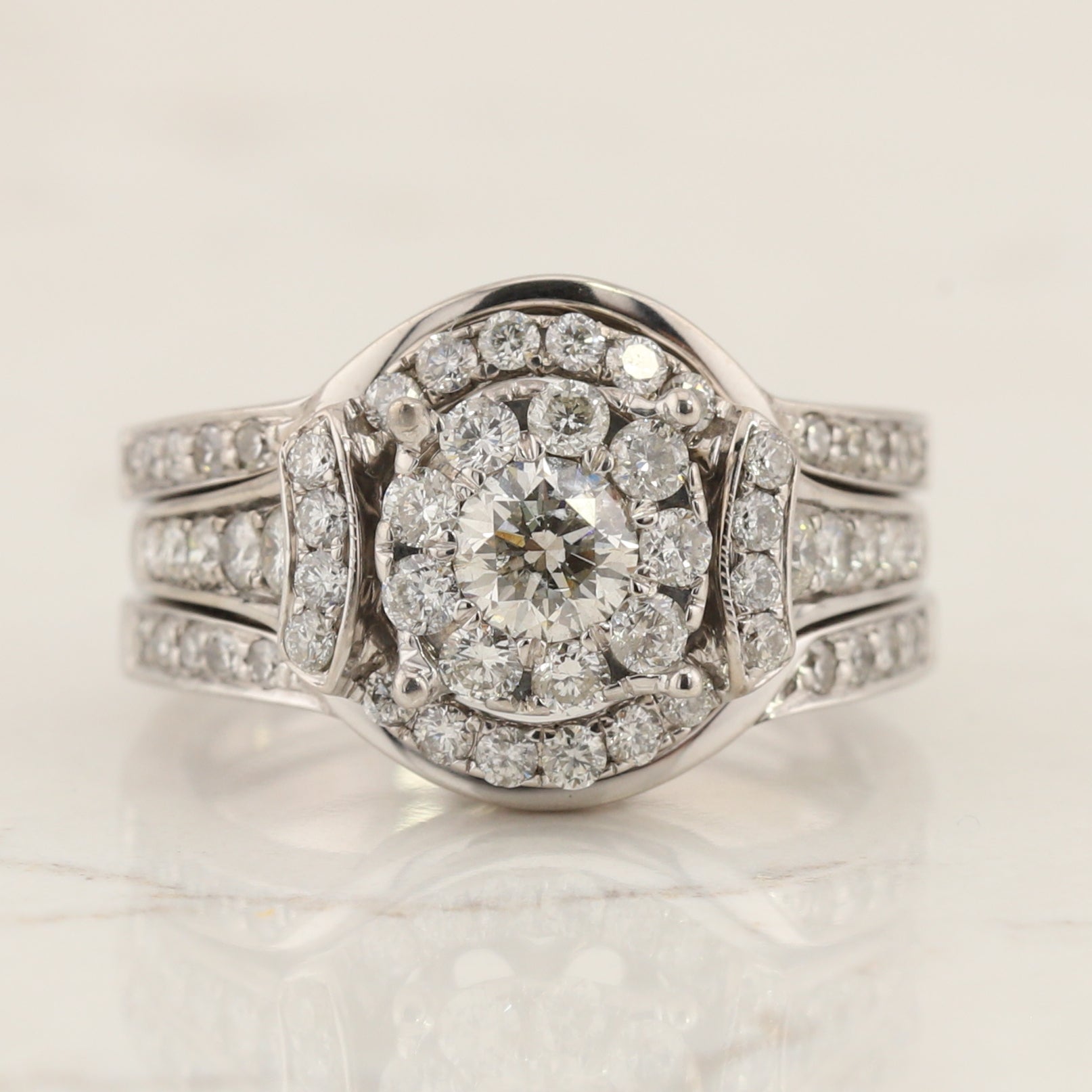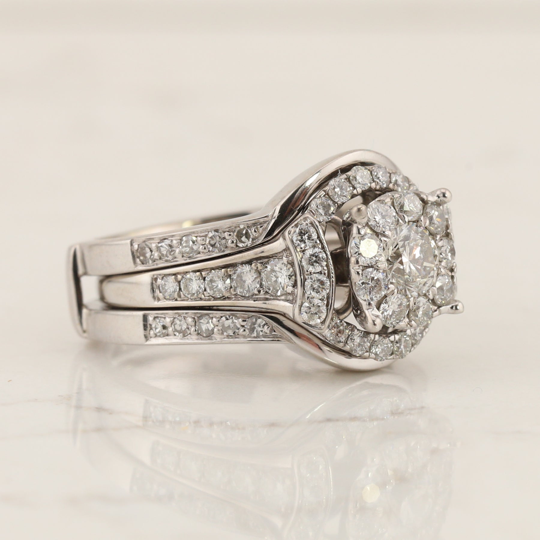 14kt white gold saddle ring with a cluster engagement ring. The ring is a finger 7.