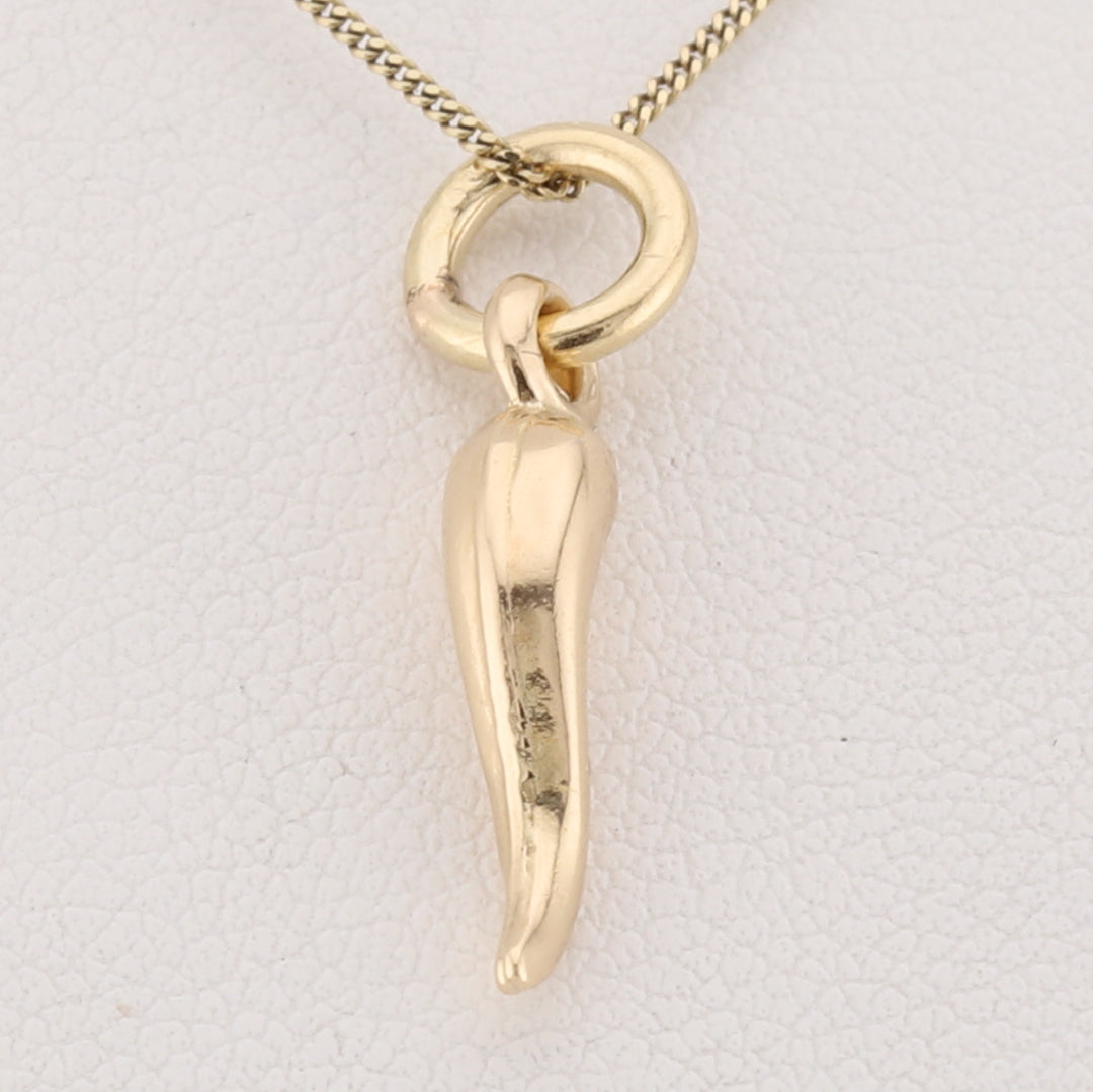Bring timeless elegance to your jewellery collection with this delicate 10 kt yellow gold charm. Measuring 1.7 cm, this versatile piece features a classic horn design that symbolizes protection and good fortune. Perfect for adding to a bracelet, necklace, or wearing as a standalone pendant, it combines traditional craftsmanship with enduring style. An ideal gift for those who appreciate meaningful, wearable art. (chain not included)