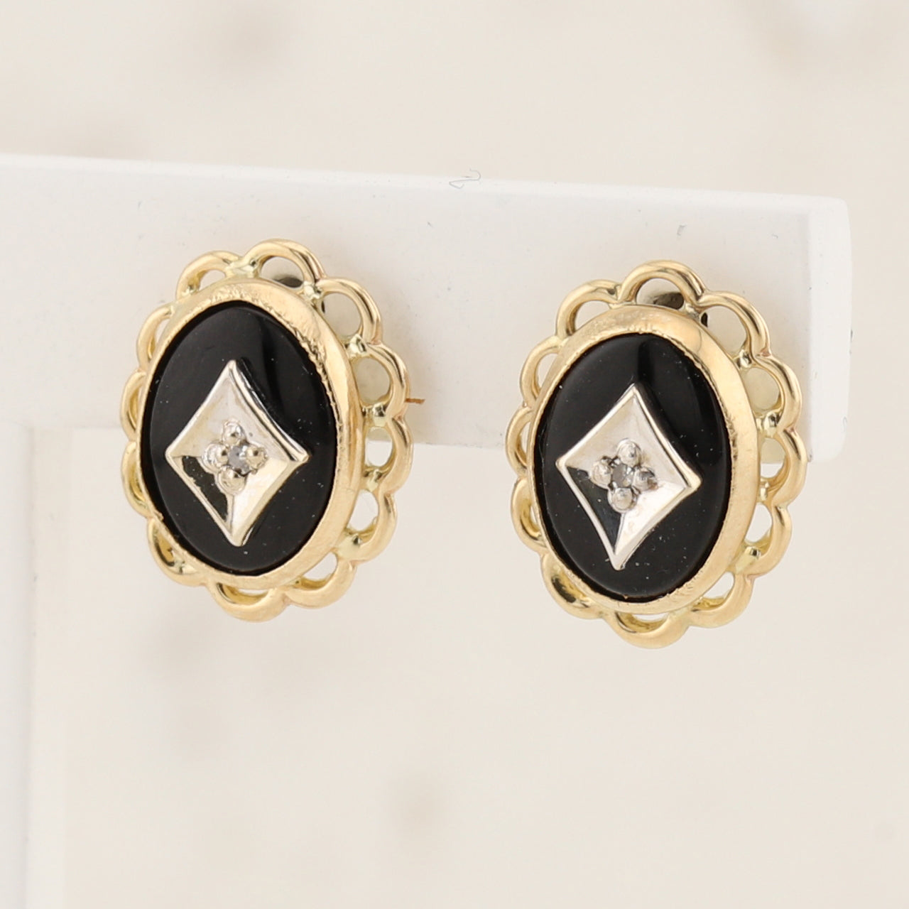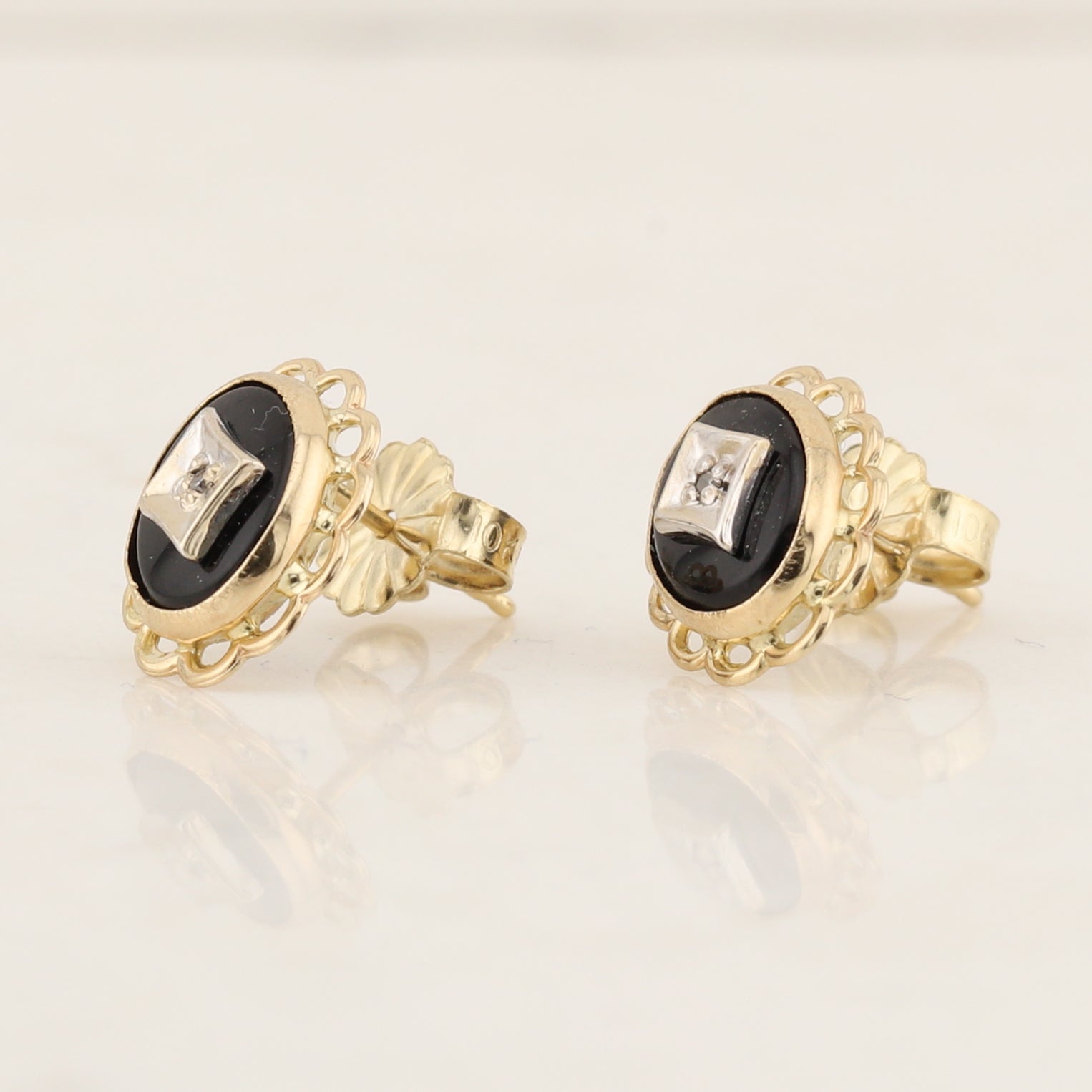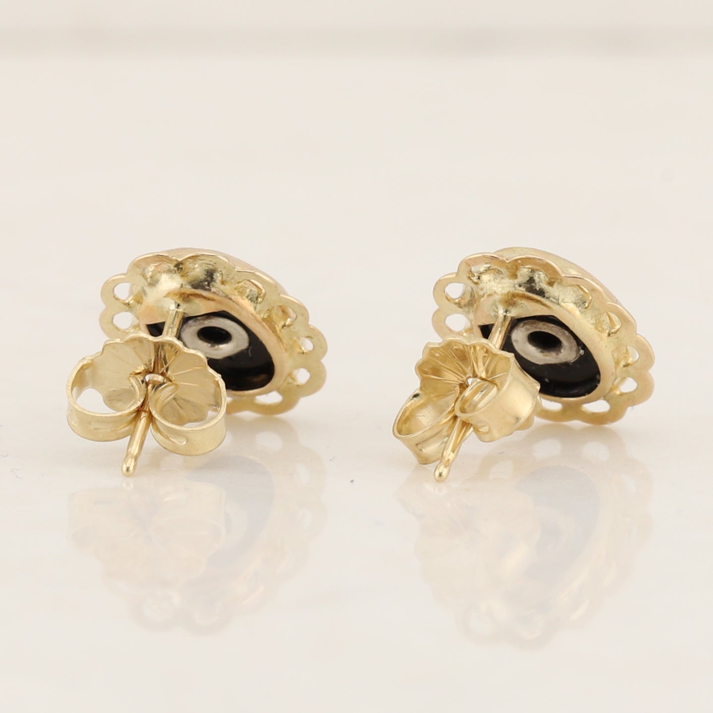 10kt yellow gold earrings with small accent diamonds in the center, these are very petite in size only 11mm long.