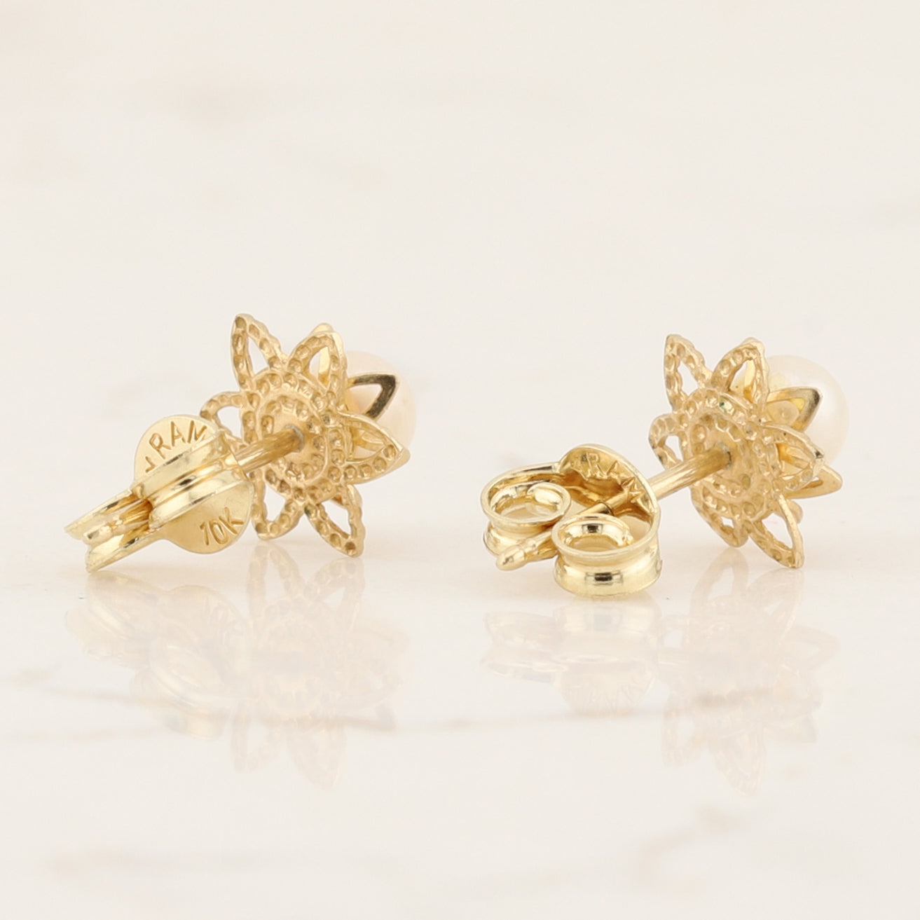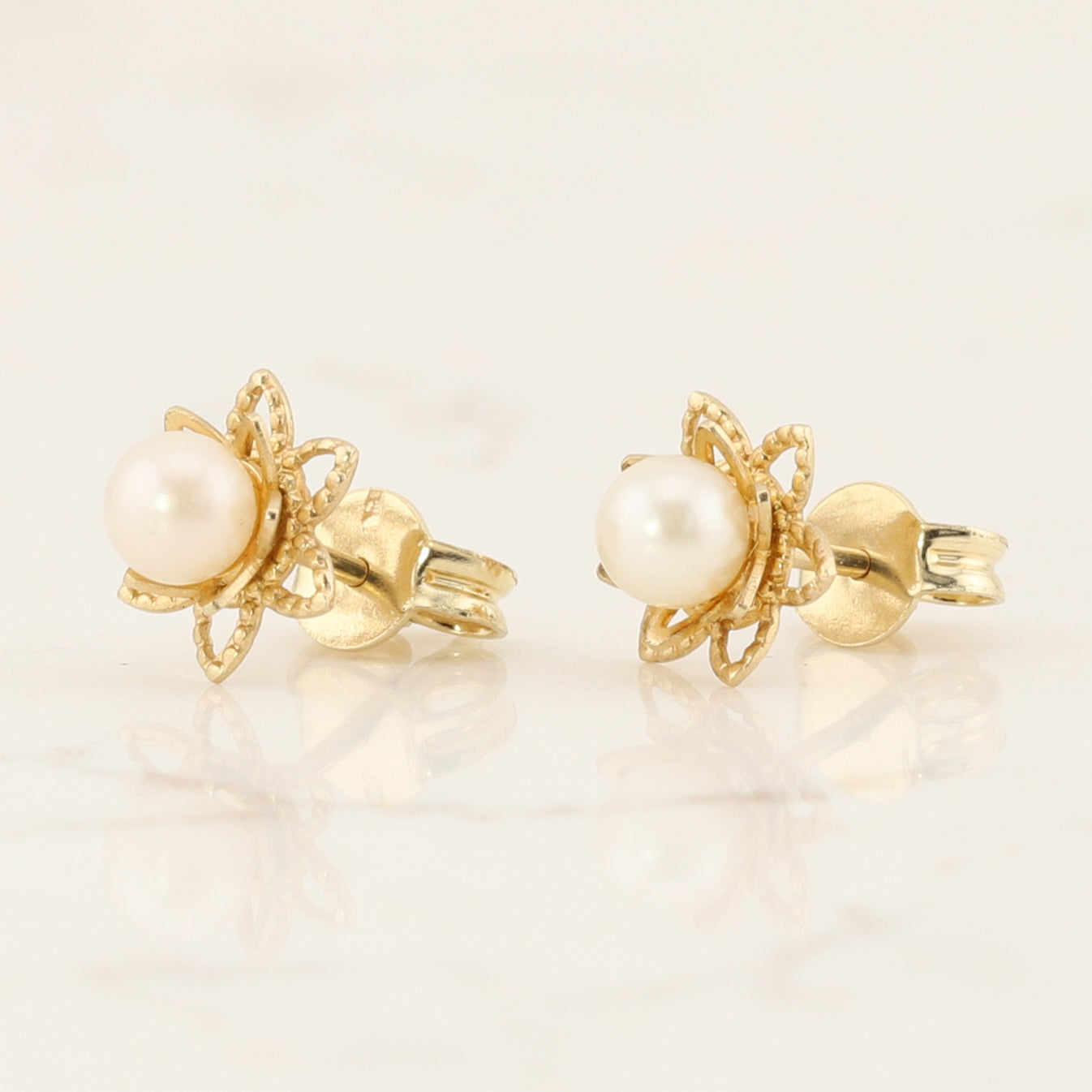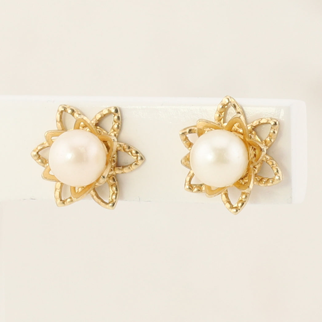 Timeless pearl stud earrings in 10kt yellow gold.