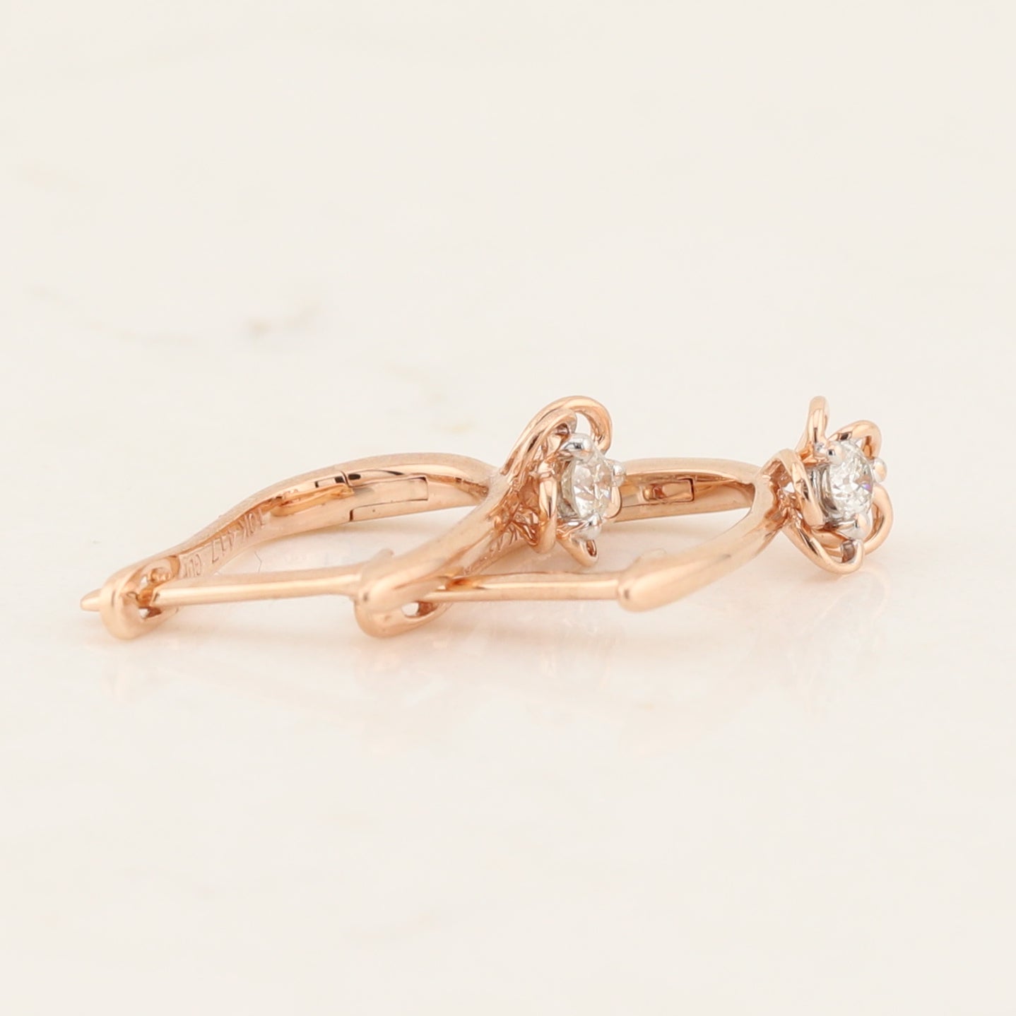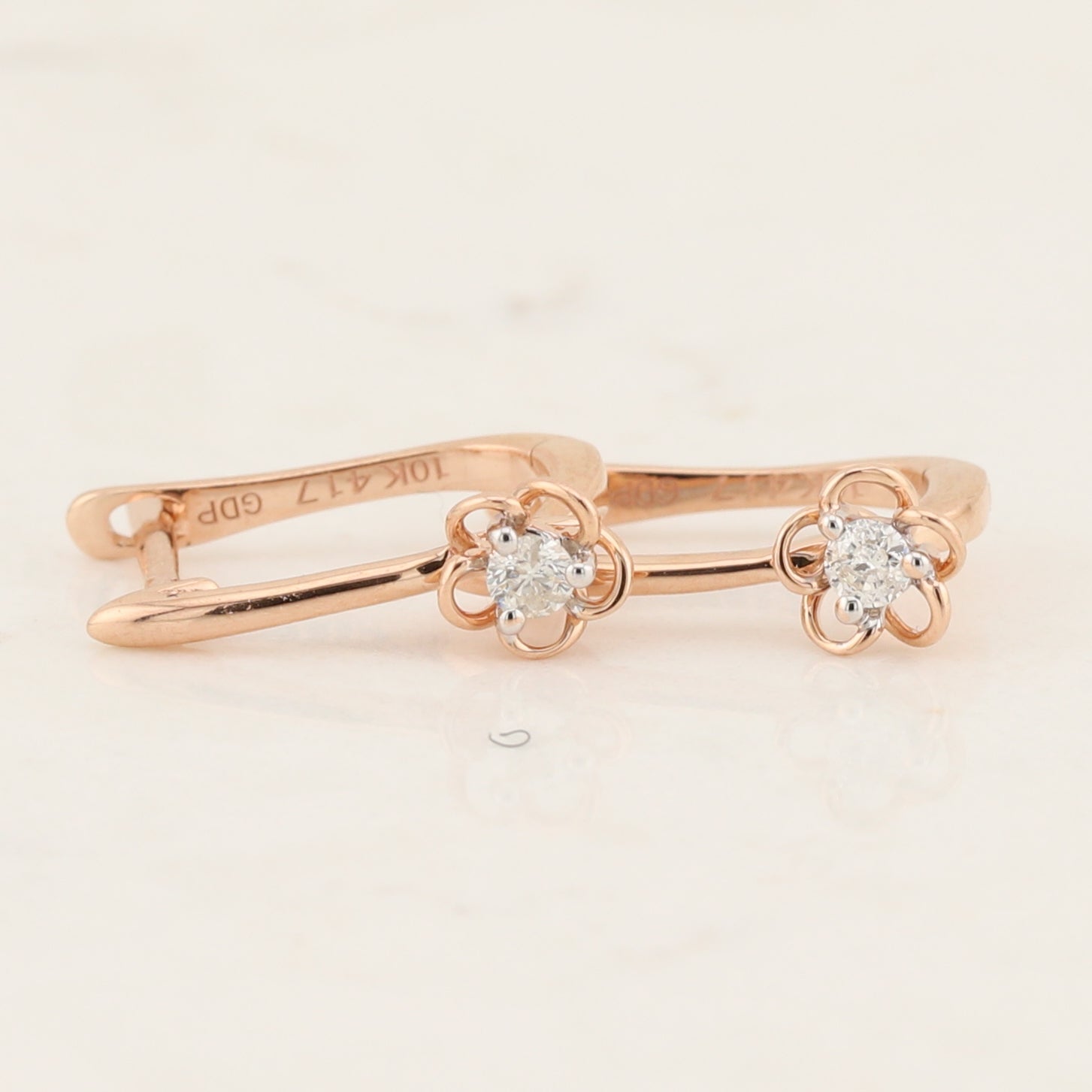 10k rose gold floral drop earrings set with a small diamond in each earring.
