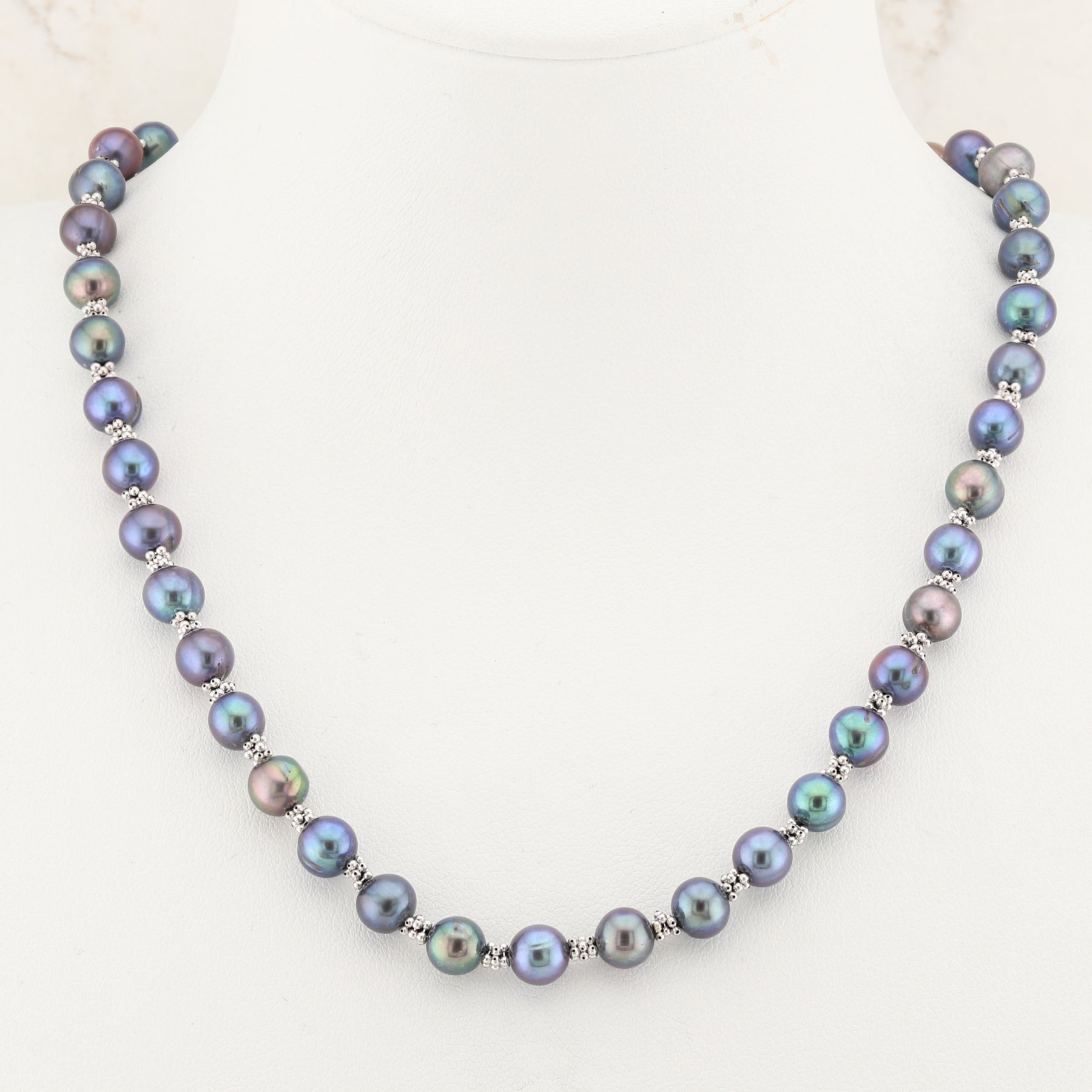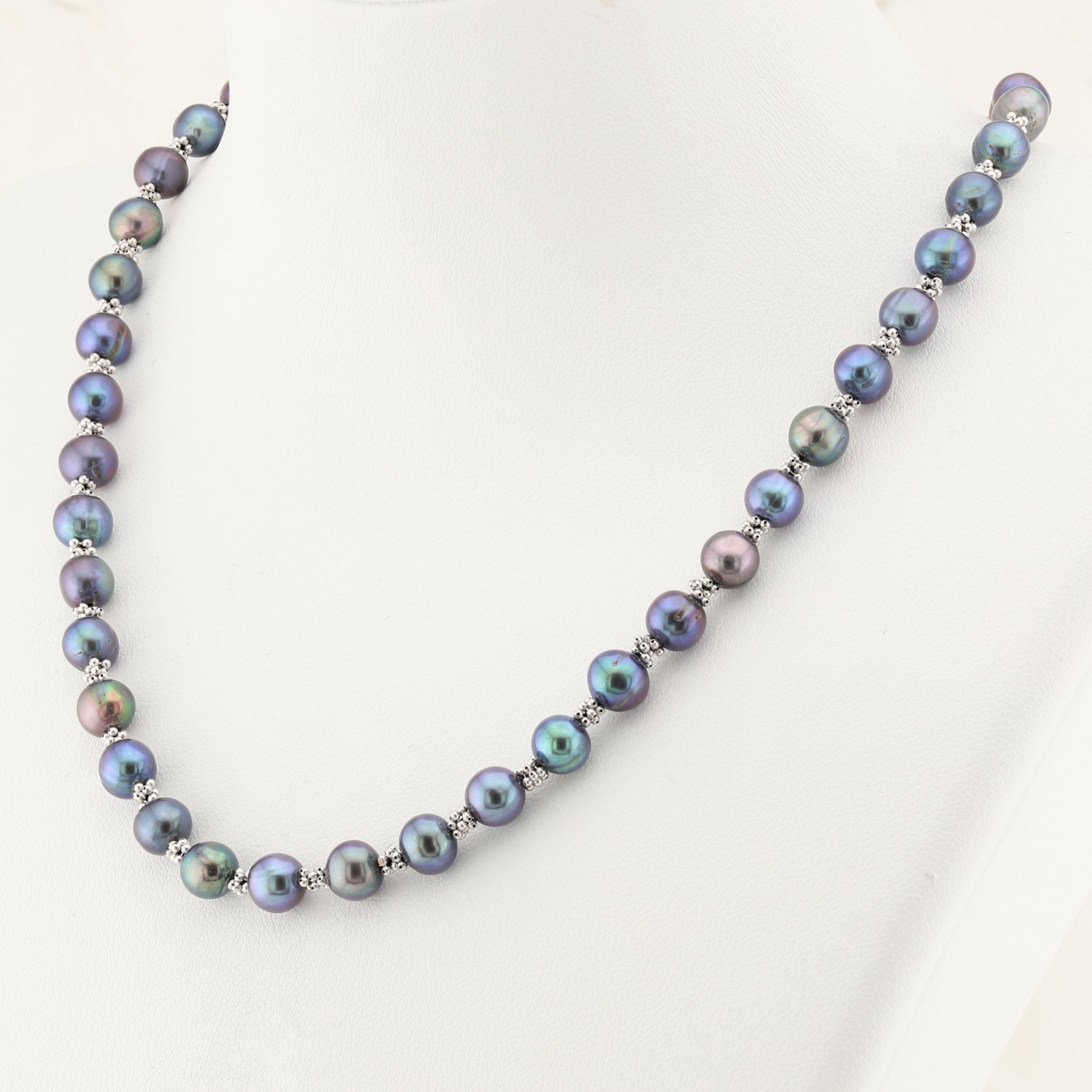 `14kt white gold clasp adorns this black pearl necklace, measuring 16 inches in length, matches bracelet style number 453887