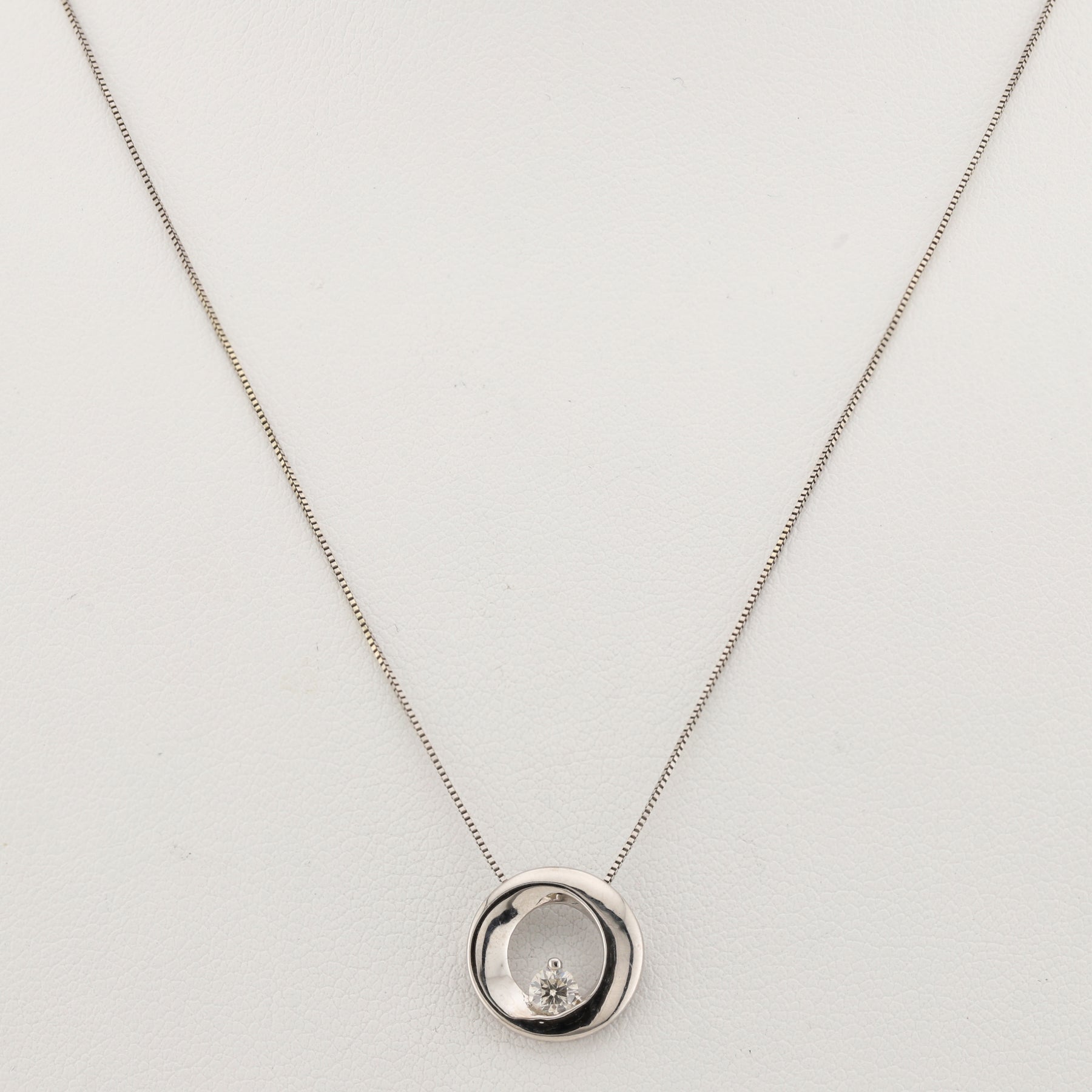 Diamond circle pendant is a petite piece with a 18 inch light gold chain measuring 18 inches in length.