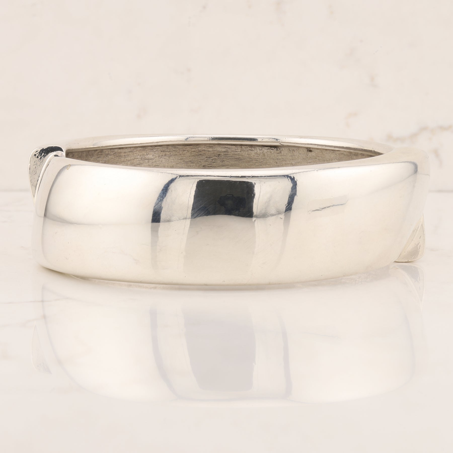A sleek sterling silver bangle with clean lines and contemporary appeal. This minimalist piece spans over 2 centimeters wide, offering understated elegance with a polished finish that gleams subtly on the wrist. Modern in design yet timeless in style, it pairs effortlessly with any look—whether worn alone or stacked with other pieces. Crafted in quality sterling silver for everyday sophistication.