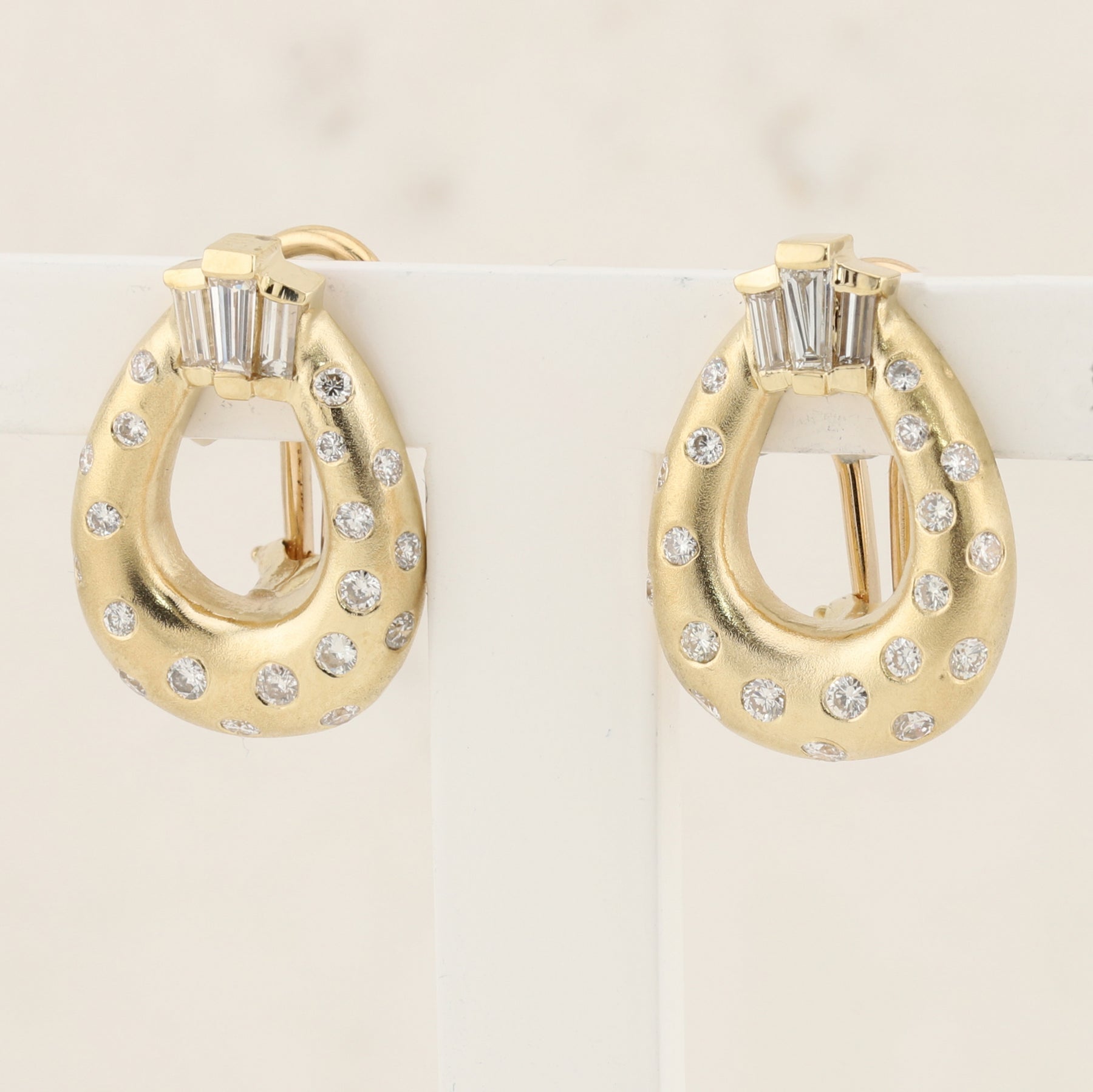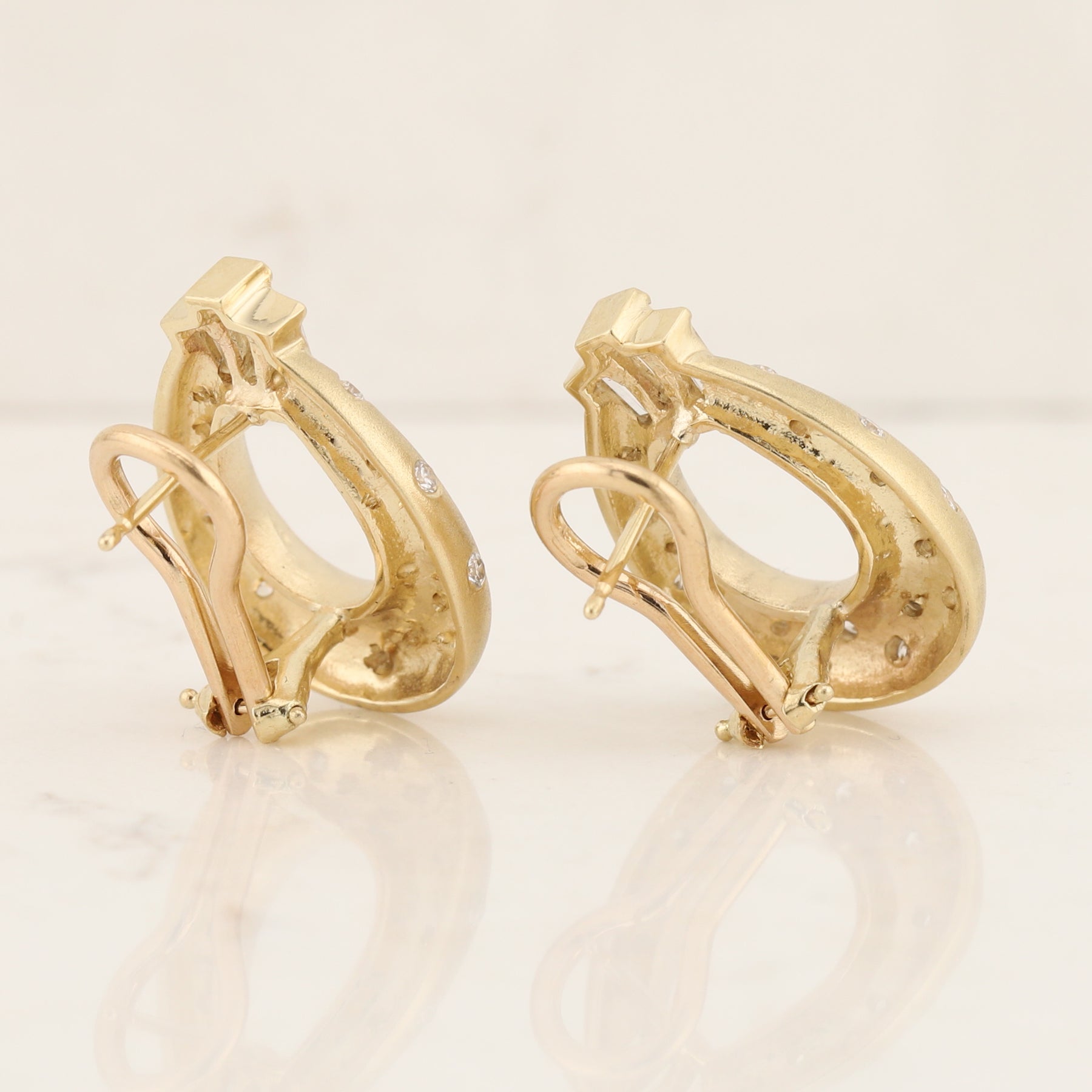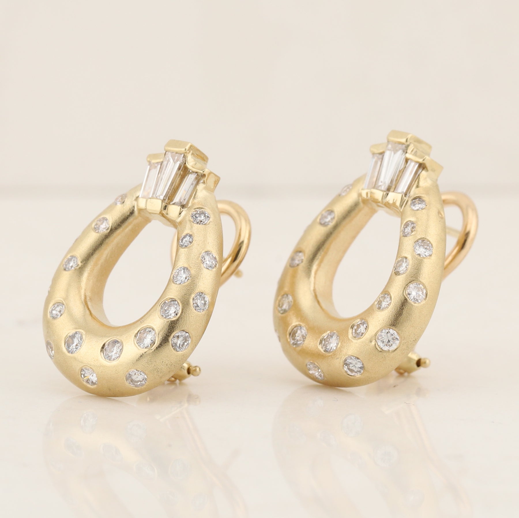 Gypsy set diamonds in a horseshoe shape with baguettes at the top, The backs are omega style.